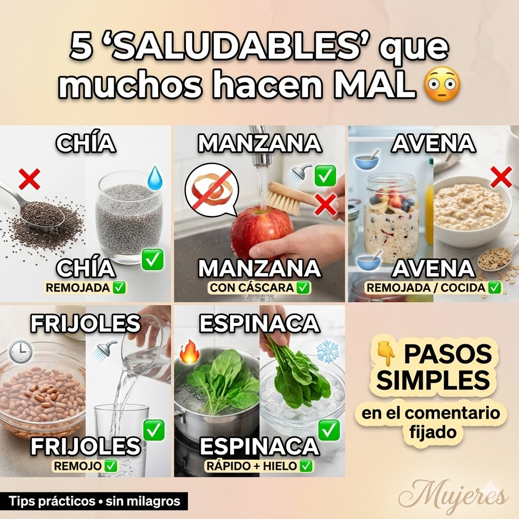Comer sano no es solo “qué comes”, también es cómo lo preparas. Chía, manzana, avena, frijoles y espinaca pueden ser grandes aliados… pero si los usas mal, pueden darte molestias, perder textura o desperdiciar nutrientes. Aquí tienes una guía clara de para qué sirven y cómo hacerlo bien.