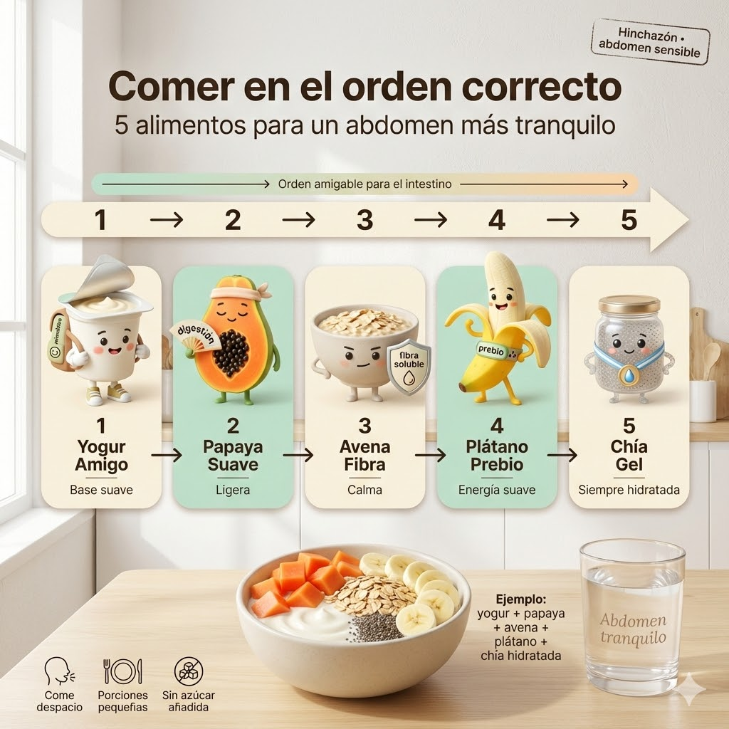 Yogur, papaya, avena, plátano y chía pueden ser un “equipo” muy útil para quienes buscan un abdomen más calmado frente a hinchazón y colitis, especialmente si se eligen versiones simples (sin azúcar añadida) y se consumen con un orden y porciones inteligentes. La constancia y la tolerancia individual son la clave para sentir el cambio.