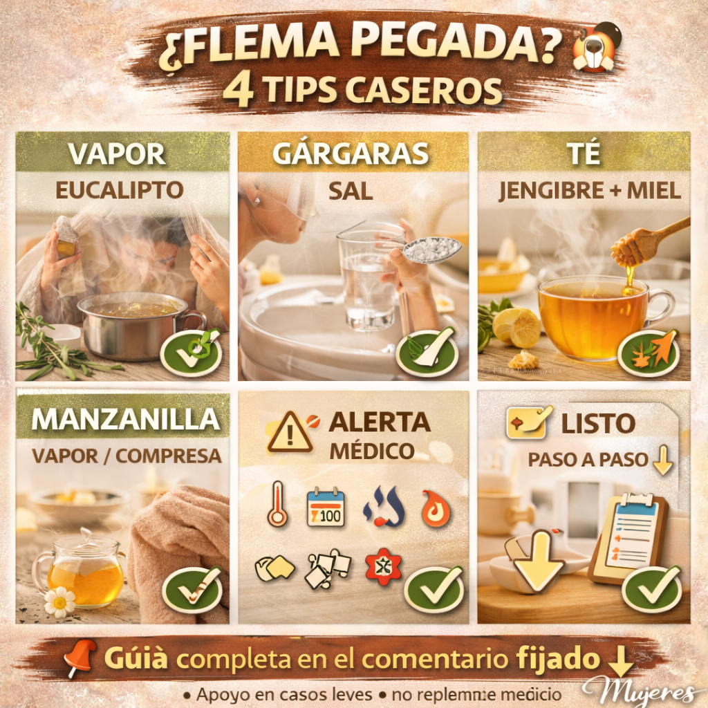 No siempre hace falta ir directo a medicamentos. En casos leves, remedios como vapor con eucalipto, gárgaras con sal, té de jengibre con miel y manzanilla pueden ayudar a aliviar congestión, movilizar flema y sentir la garganta más cómoda.