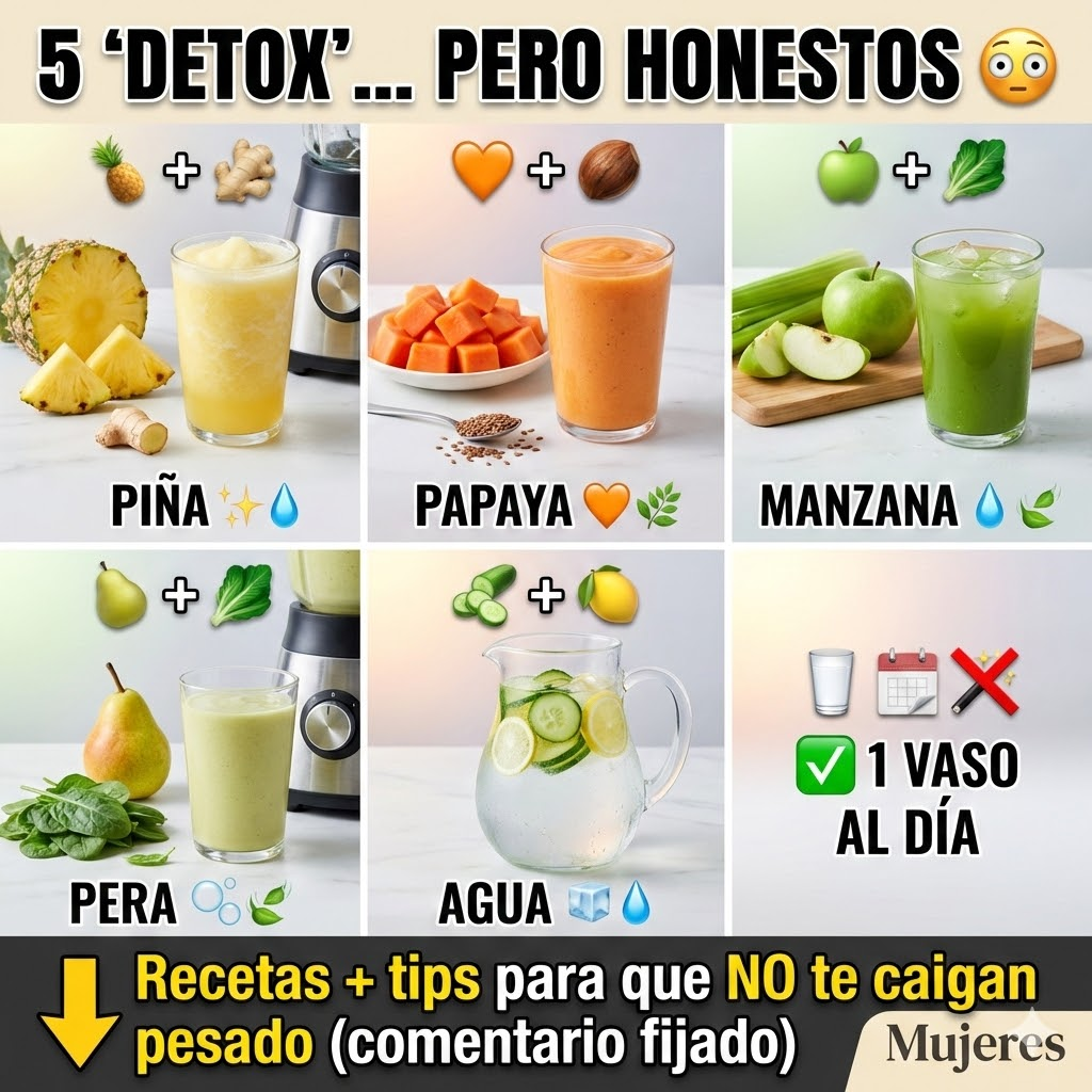 En redes se usa mucho la palabra “detox”. Para evitar mitos, aquí va la versión honesta: la mayoría de estos jugos/aguas no “desintoxican” mágicamente; lo que sí pueden hacer es ayudarte a sentirte más ligero gracias a hidratación, fibra y el hábito de elegir algo fresco en vez de picar por antojo.