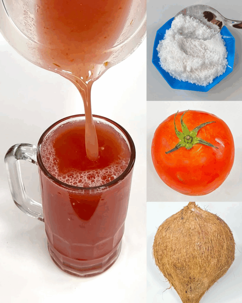 1. Coloca el agua de coco y el tomate en la licuadora.