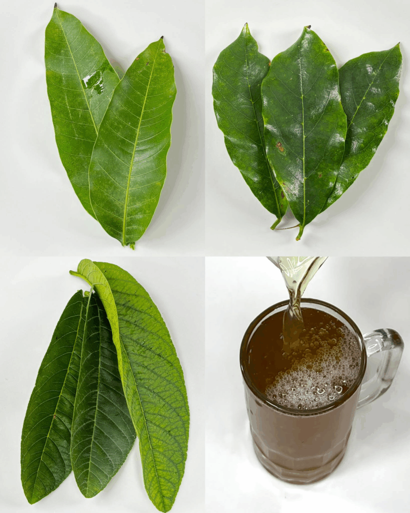 Esta receta combina hojas de guayaba, guanábana y mango, junto con un toque de cúrcuma, ingredientes usados tradicionalmente en la medicina natural por sus propiedades antioxidantes y digestivas.