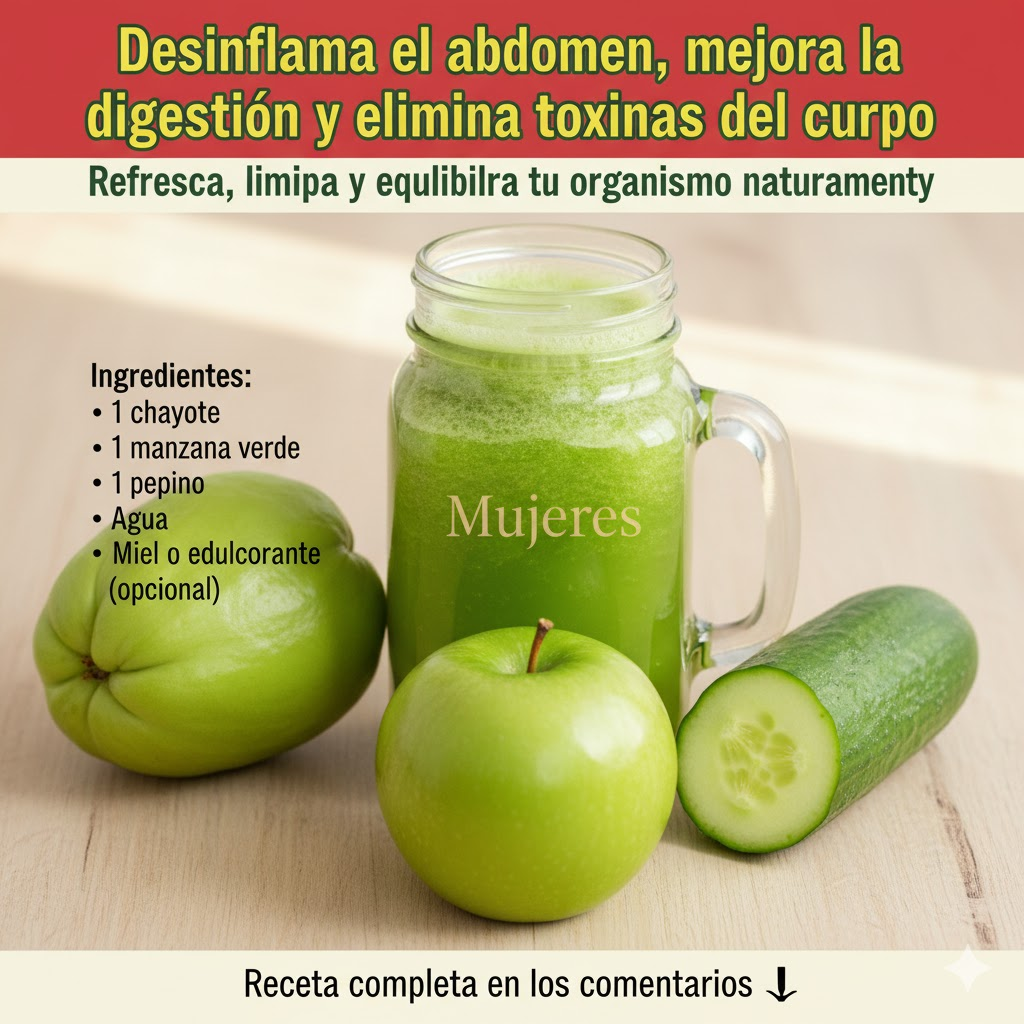 Jugo de Pepino, Manzana Verde y Chayote: Un Depurativo Natural para Desinflamar el Abdomen