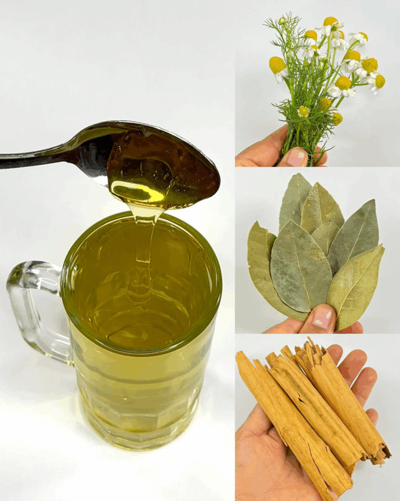 1️⃣ Coloca el laurel, la manzanilla y la canela en una cacerola