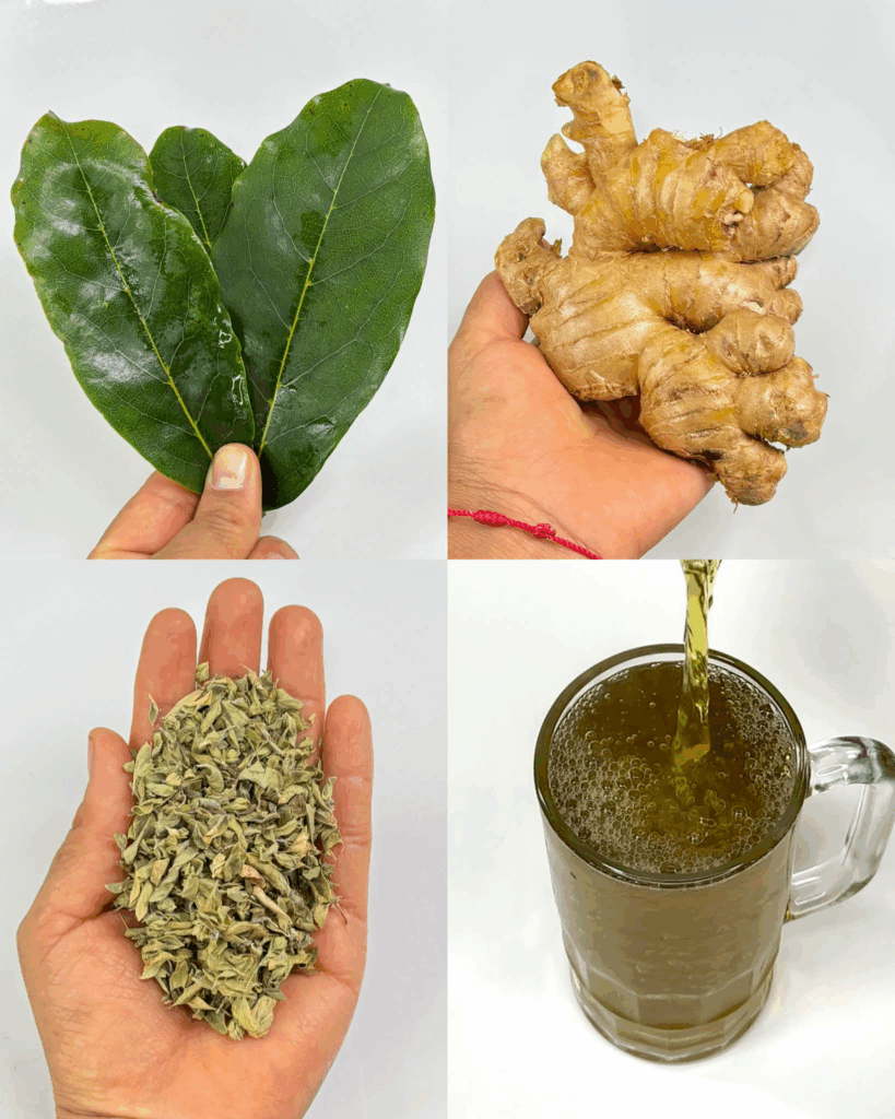 1️⃣ Coloca las hojas, el jengibre y el orégano en una cacerola con tapa