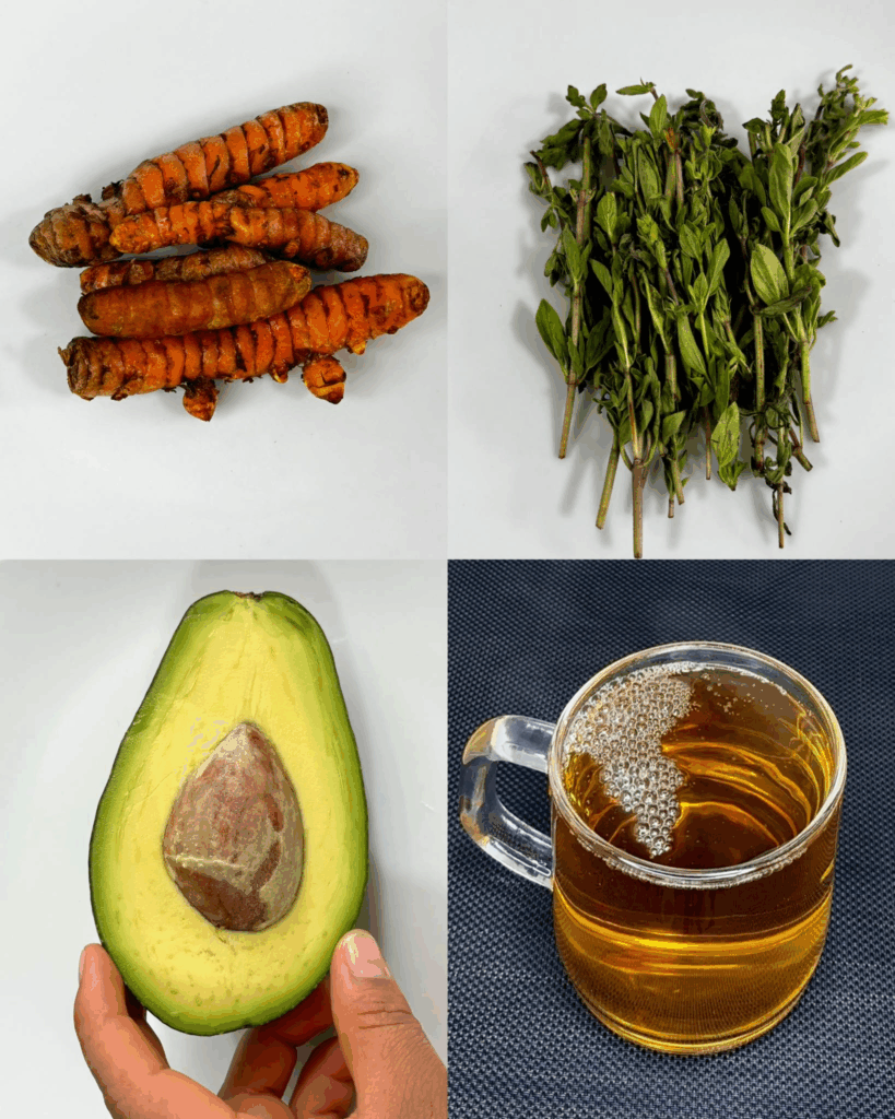 👉 Poderoso antiinflamatorio, útil contra artritis, enfermedades hepáticas e intestinales. - ½ semilla de aguacate picada