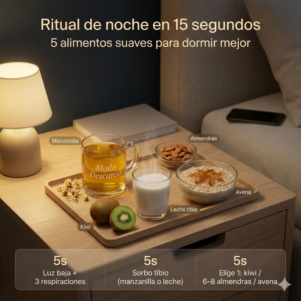 Ritual de noche en 15 segundos: 5 alimentos suaves para dormir mejor y relajarte (sin drama)